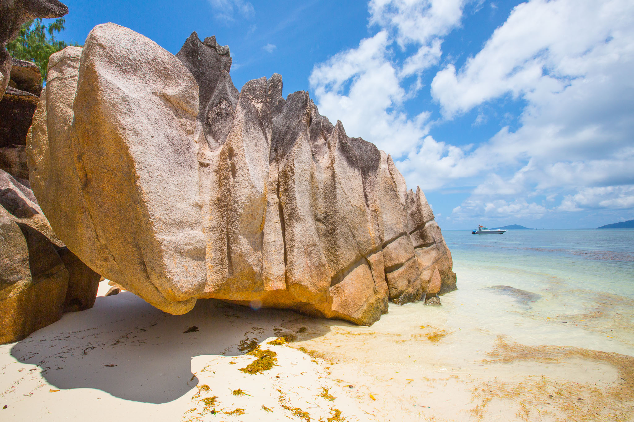 Granite rocks on white beach