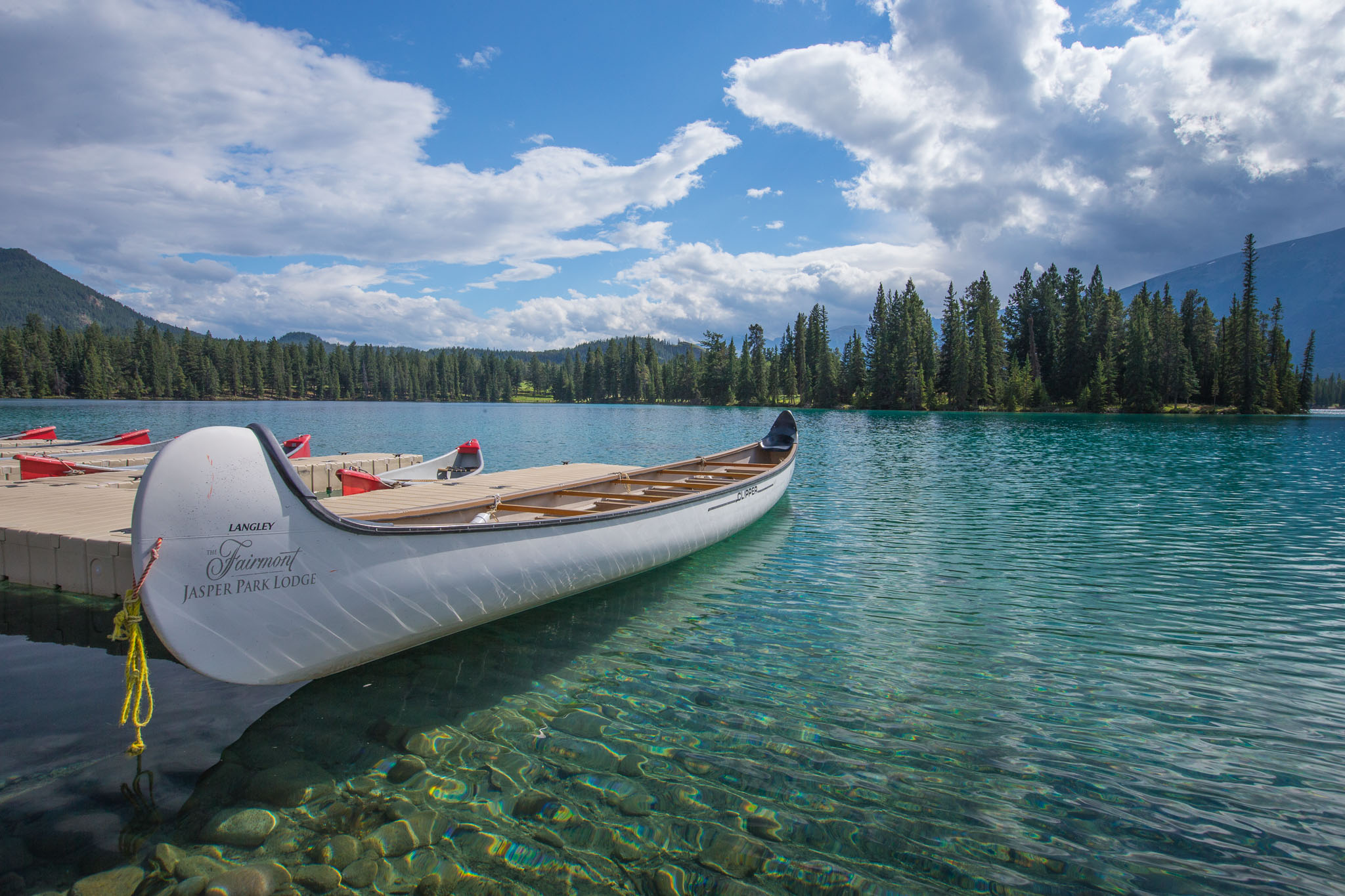 Kanus auf dem See des Jasper Park Hotels