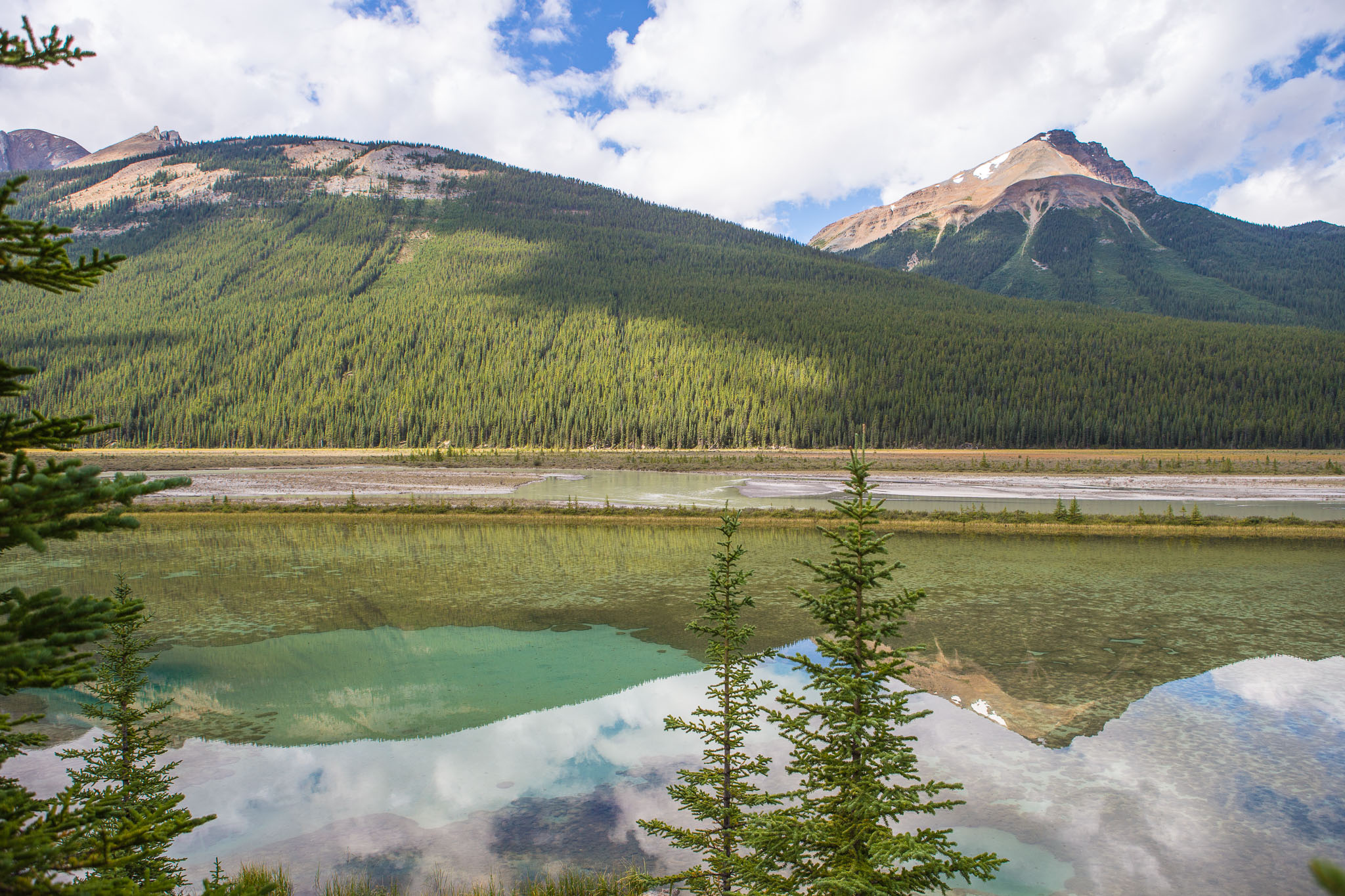 Im Bow River spiegelt sich der Mt. Gec