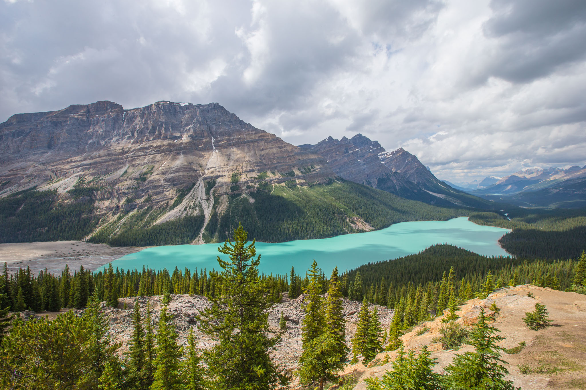 Toll leuchtet der Lake Peyto in seiner fantastischen Cyanfarbe